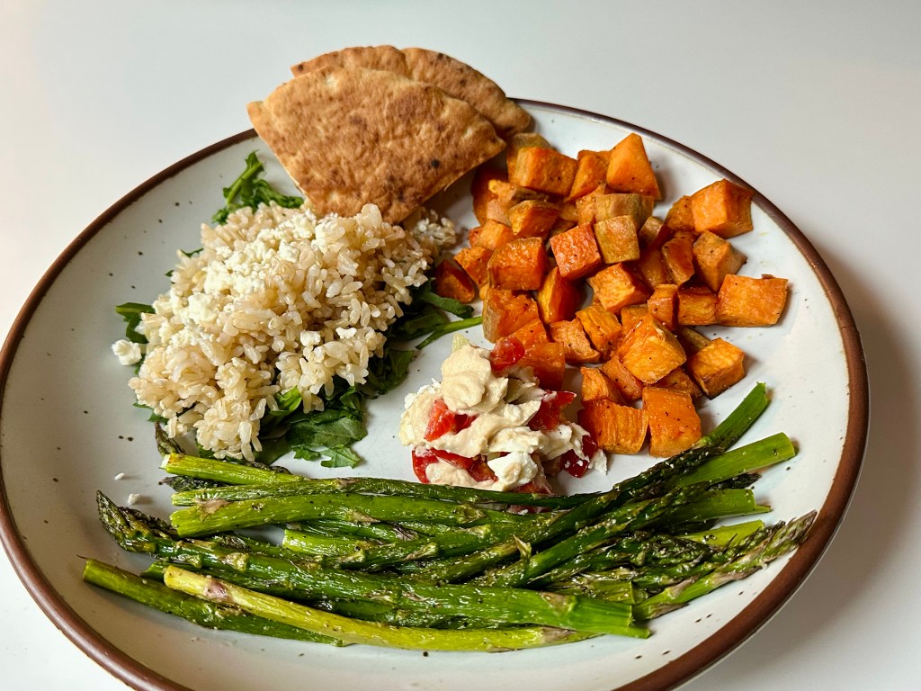 I didn’t have time to run to the store the other day and needed to make something for dinner. If it means not going out into traffic to shop at a busy time of day, believe me, I WILL find something in this house to make for dinner! This was SO GOOD, we had it two days in a row! It was quick, oh so delicious and it stuck with us. Asparagus is so good right now!