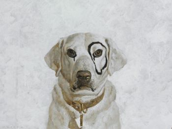 According to The Pooch Times “Wyeth said he painted the circle around Kleberg’s eye in the 1980’s after the pooch got too close to his easel”. According to Christie’s, Jamie Wyeth’s wife, Phyllis, was given the dog by Robert Kleberg of the King Rach in Texas when he passed away. Mrs. Wyeth named the dog Kleberg in memory of her friend.