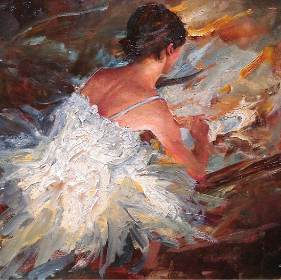 I love this painting… when I was young I remember my dad painted a ballerina… it was an oil painting and I absolutely loved it… I’m thinking he gave it to my grandma (his mother-in-law)… (hmmm, wonder what happened to that painting?) I admired it so much and wanted to be a ballerina when I grew up. Well I grew up… I did take many years of ballet classes, but then, like the piano lessons life got busy and I stopped. Oh how I wish I never stopped! The artist, Scott Mattlin captures his subjects beautifully and in such a loose style which explains all the red dots I suppose. I try to pick one that isn’t sold, however, this one IS sold, but I loved it, so… If you get a chance, check out his website! Judging by his website he’s a cool guy, with a really neat story as to how he became an artist and the path he took. I admire his journey! This guy is from Denver, CO but teaches workshops in different areas… check him out!