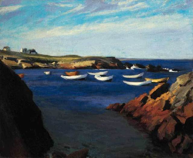 Ooooh how I love Edward Hopper’s work! His Maine paintings especially… love his version of Blackhead on Monhegan Island, ME… This painting is entitled “The Dories, Ogunquit” painted in 1914.