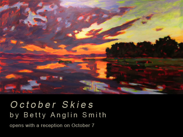 If you’re in Charleston you simply cannot miss Betty’s show… OCTOBER SKIES will be in the gallery for the art walk on October 7, 2011… check with the gallery if you have any questions. Click HERE to go to the Smith Killian Gallery website.