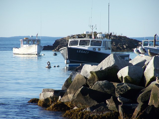 Isn’t this boat a beauty? It’s truly gorgeous, however, I doubt the owner would appreciate it being described that way (sorry Sherm, but it is what it is). Sherm Stanley is the owner and pilot of the 40 foot black-hulled Young brothers lobster boat. I’ve always thought dark black/navy boats had a classy look about them. This isn’t just a classy boat, it’s a hardworking lobster boat. Fancy is the last thing they’re going for. I admire the hard work that those guys do, and a lot of times in extreme weather. It’s fascinating. They earn their money no doubt. Seems like lobsters should bring a lot more money than they do… there is a GREAT ARTICLE from Yankee magazine about the lobstermen on Monhegan.