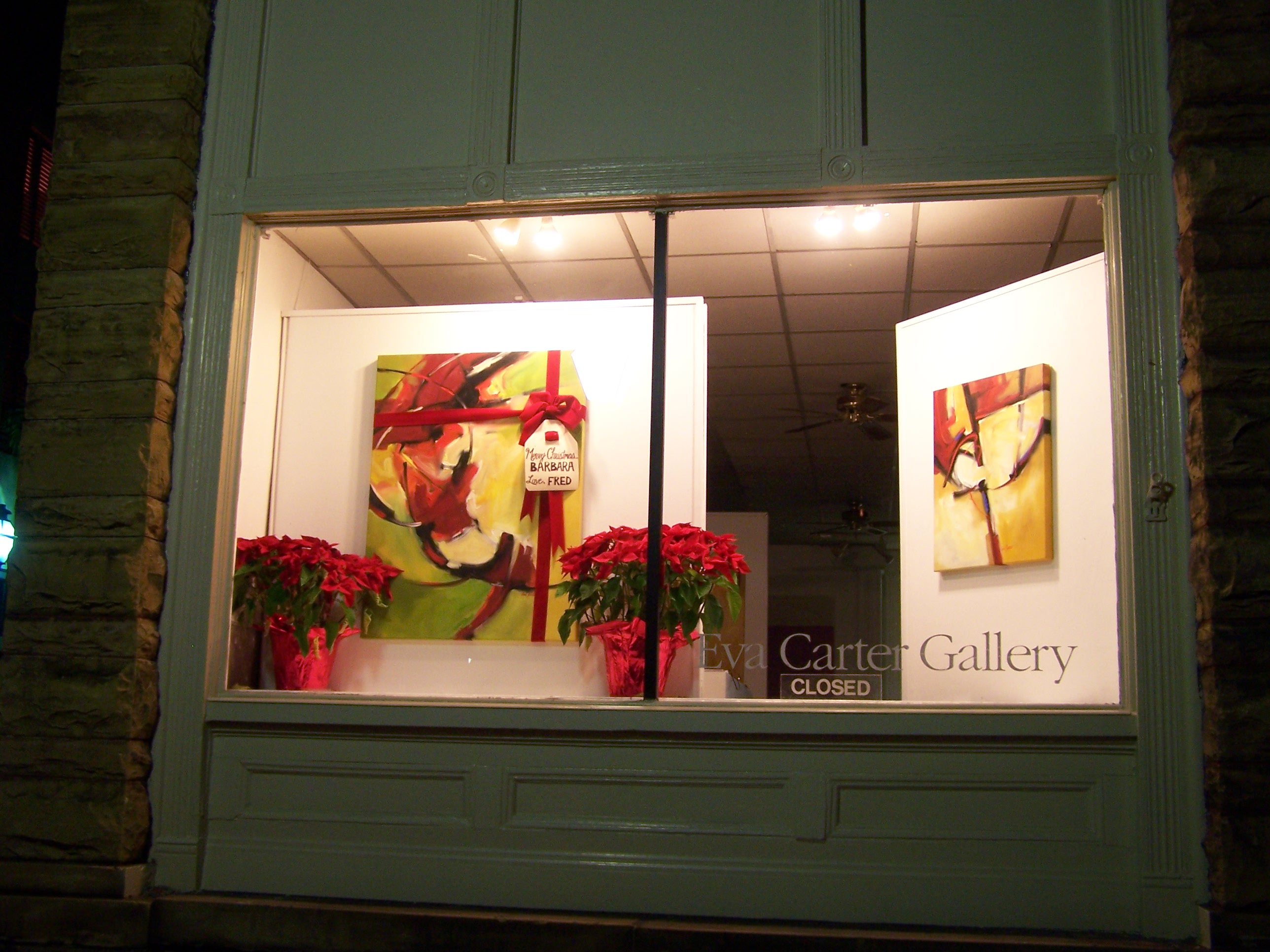 Several years ago on Christmas night my husband and I were riding around downtown Charleston, SC. Then he covered my eyes and told me he was taking me to my Christmas gift… WHAT???!!! I was trying to pay attention (good luck, I don’t do so well when I can see, HA), but we kept making turns so I had NO idea where we were. He stopped the car. Still unable to see he helped me out of the car and walked me up to the window… I opened my eyes, took in the sight and said… “ME Barbara, YOU Fred?????!!!!!” Not meaning to sound like Tarzan, I just couldn’t believe that the tag on the painting in the window that everyone can see was TO: Barbara FROM: Fred. Holy Cow! That was so special. Thanks to Eva and to Karin Olah, the gallery manager at the time, for making it so special! Do I have a cool husband or what? What fun!
