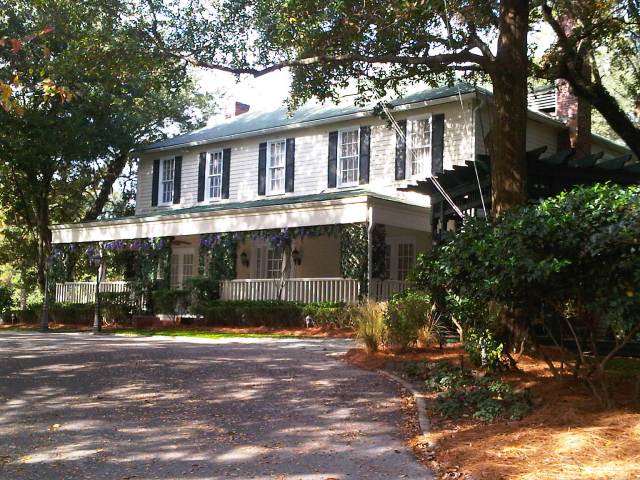 This is one of the homes maintained for the television show ARMY WIVES. See the wisteria (I’m guessing that’s what it’s supposed to be?) on the porch? It’s not real… it’s fascinating to see sets up close, what you see on TV is so far from what it really looks like! I remember one year Fred and I were in Mount Pleasant, SC in an area they call the “Old Village”, this little shop that we really liked was painted a different color, on second look, all the shops were different, as were the nearby homes, it was like being on the Twilight Zone (anyone remember that show??), then we saw men on ladders HANGING GREEN LEAVES ON A BIG OAK TREE, we asked what was going on… they were getting ready to shoot a scene for a Nicholas Sparks movie (I believe it was The Notebook), so intriguing! The season of Army Wives starts on March 4! I like the show, Fred likes it because he’s figuring out where they’re at for each scene! I’m not sure how it works, who maintains these homes, etc. but they do a great job… Catch you back here tomorrow!