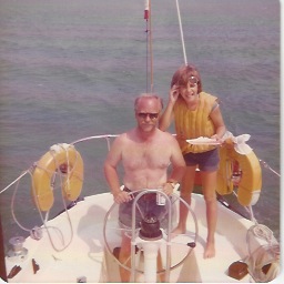 Barbara and her dad, Joe Fidler – sailing on Fiddle Faddle…