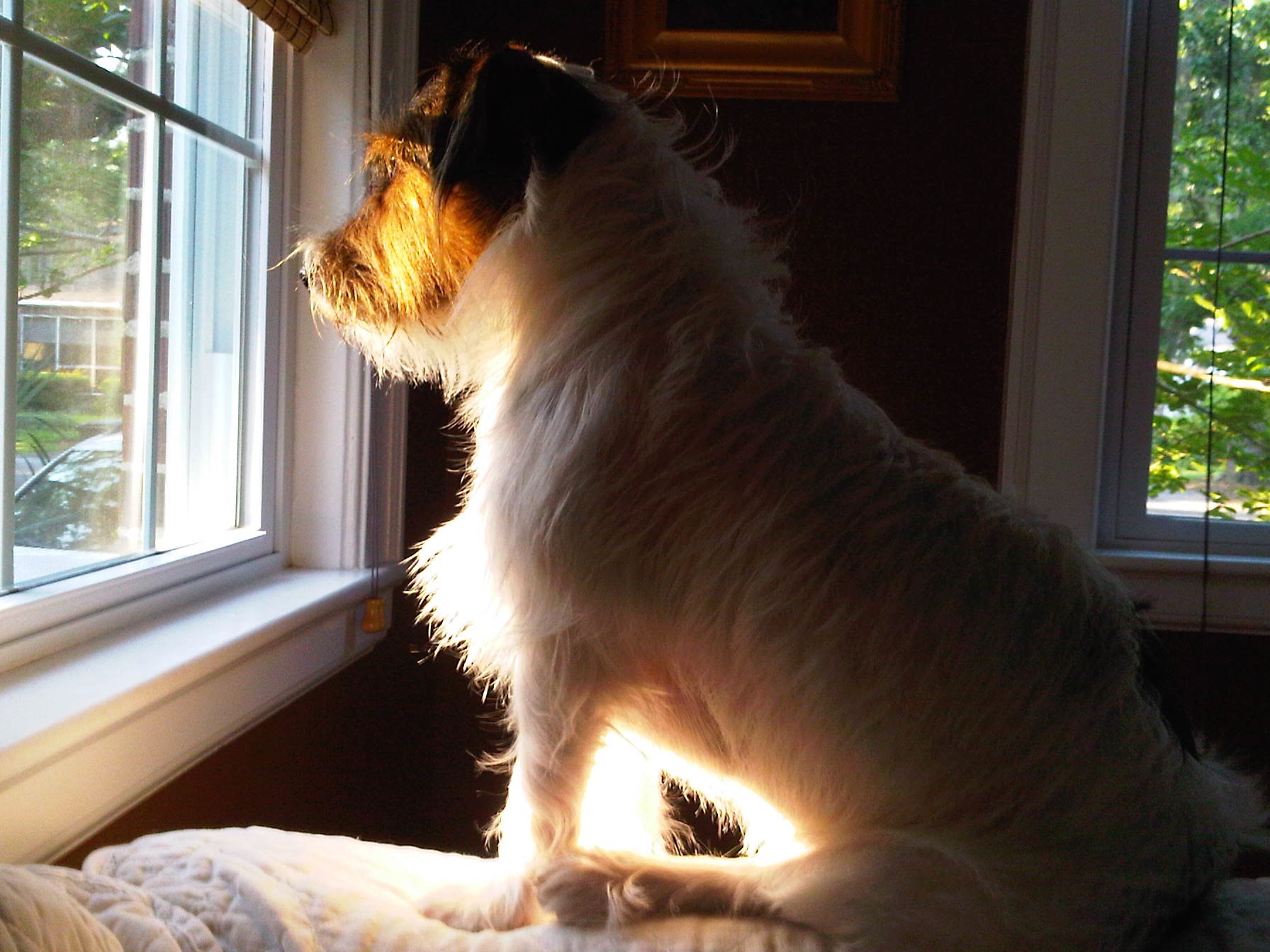 Charlie has his own sofa. We moved it near the window when he was a puppy so he could see down the street. Fred and I like to move furniture. Actually move entire rooms (i.e. the dining room is the study and the living room is the dining room, yep, see what I mean, just try to keep up with us)… well, we DID move entire rooms. Now we’re stuck in a situation. WE CAN’T MOVE THE SOFA! Ahhhh, there are worse things that could happen… Charlie is so content staring out the window during the day (half the time with his eyes closed) that we just can’t change it.