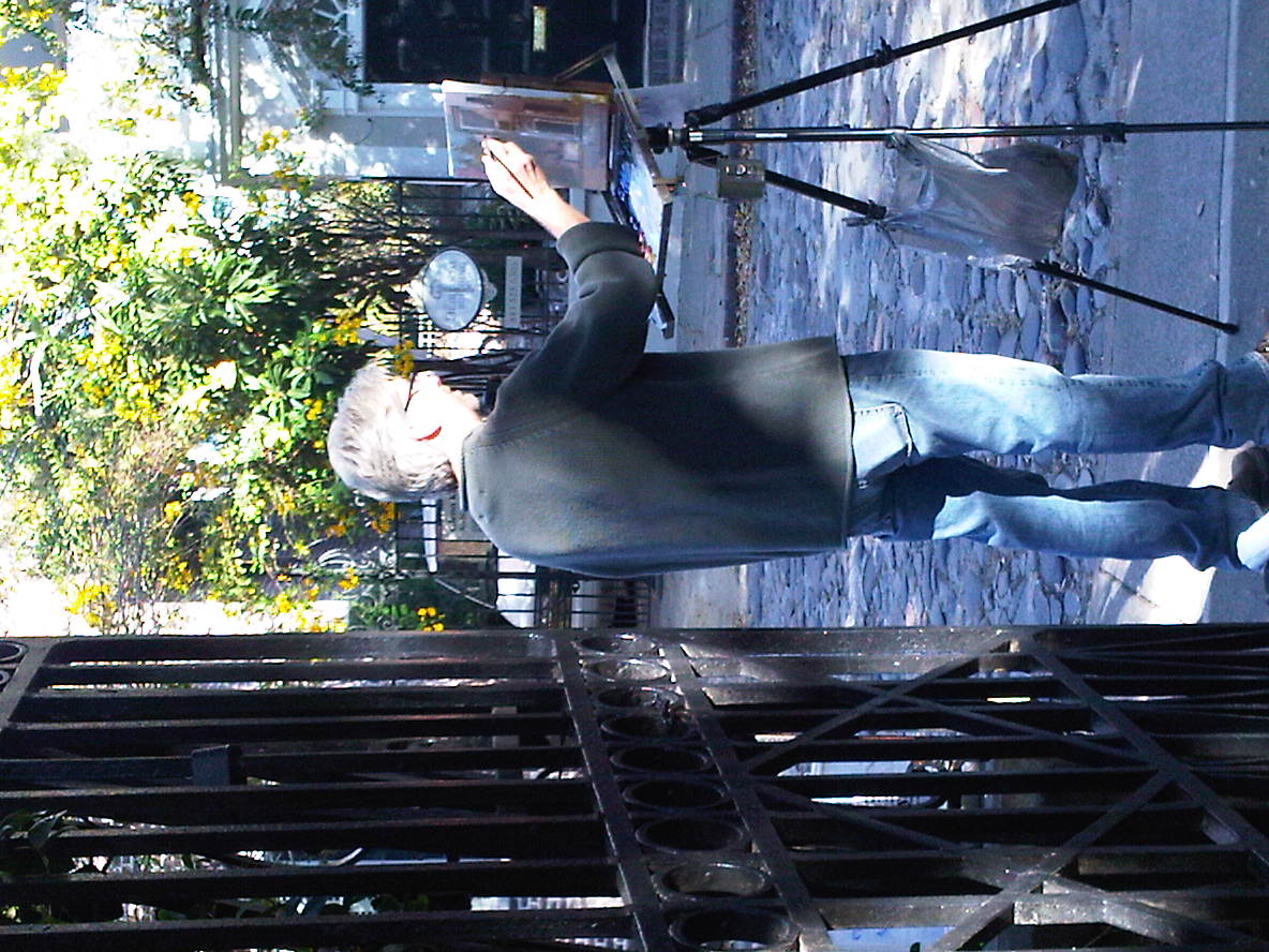 Ok, next I resorted to my Blackberry. I was so disappointed not to get the photos that I wanted. Fred offered to go home and get my spare battery (WHY didn’t I put that in the camera bag??!!). But we made do… so here’s the first photo… Mark Horton, from Horton Hayes Gallery in Charleston, SC, painting away. Effortless. Or at least it appears that way. I don’t suppose you can look like you paint effortlessly unless you do a heck of a lot of painting!