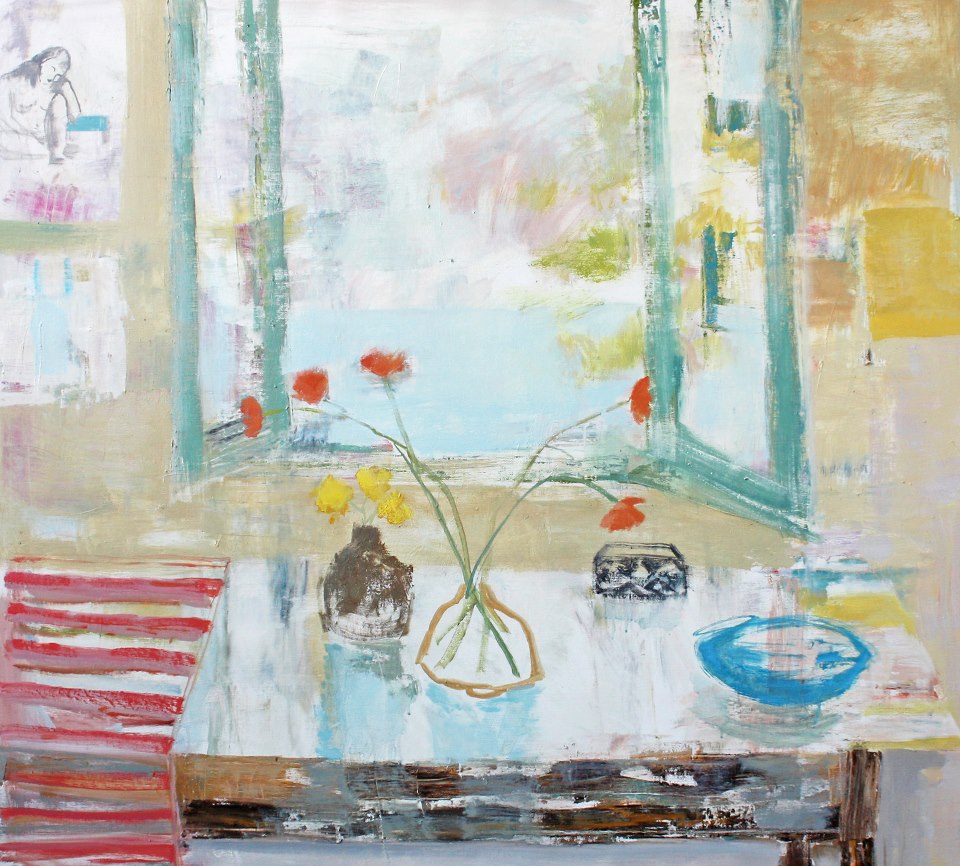 This caught my eye right away. Different. Yes. Many layers, which I adore. The bright happy flowers looking out of the open window is sweet. The overall colors very spa like, with the darker and more vibrant colors anchoring towards the bottom. Nice! I saw this on Anne Irwin Fine Art’s Facebook page. Melanie has created some nice pieces, check out her website!