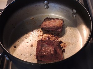 Brown the short ribs in a little olive oil – use a heavy bottom pan if possible…
