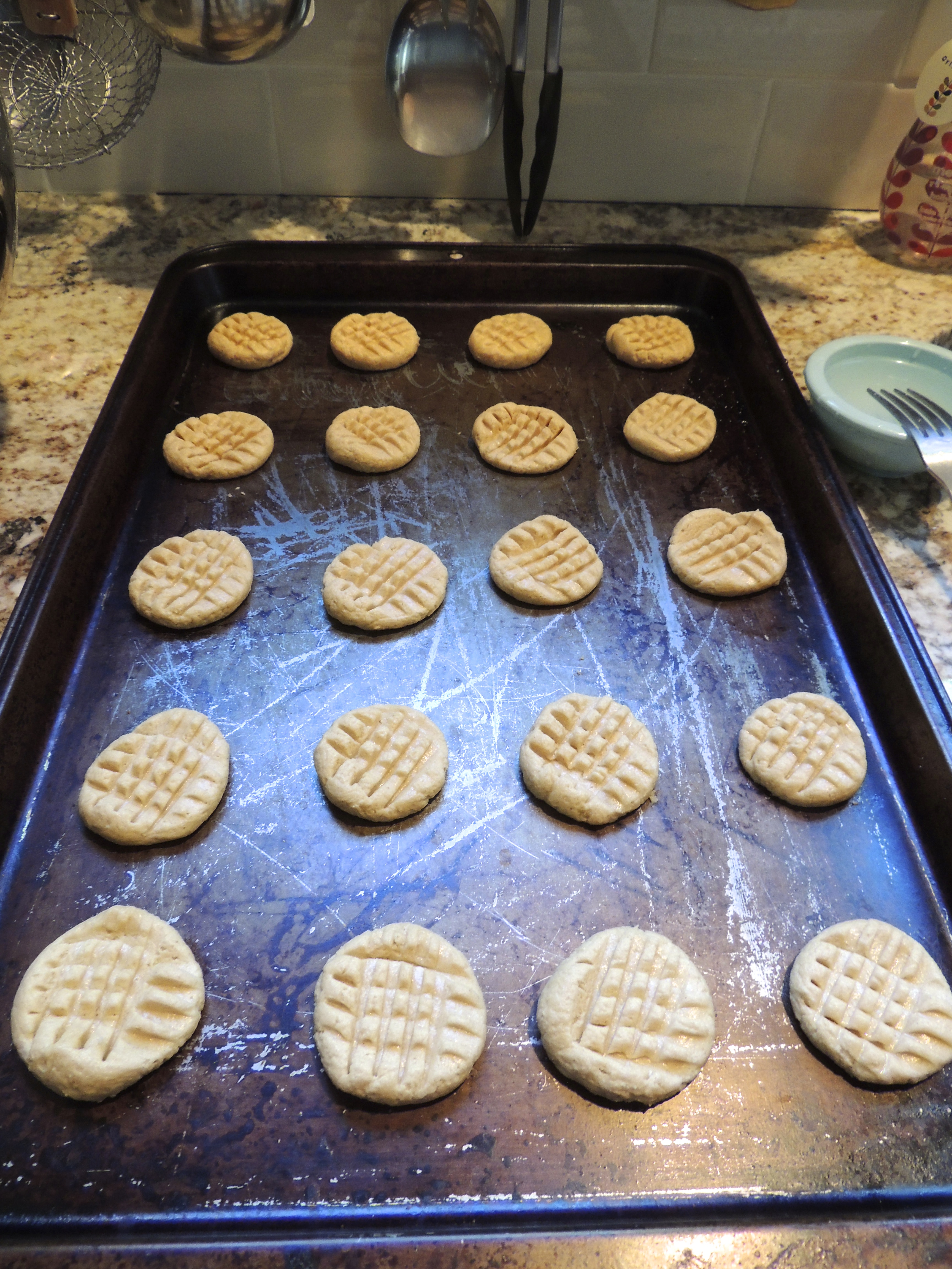 There is nothing like a good homemade peanut butter cookie! I tell myself they’re healthy (yeah, right) – full of protein, ha. Well, not so bad if you only make the once in a great while! This recipe makes a lot, so share with your neighbors! I shared some and froze some so we weren’t eating them all! Try to control yourself with the cookie dough…. good luck!