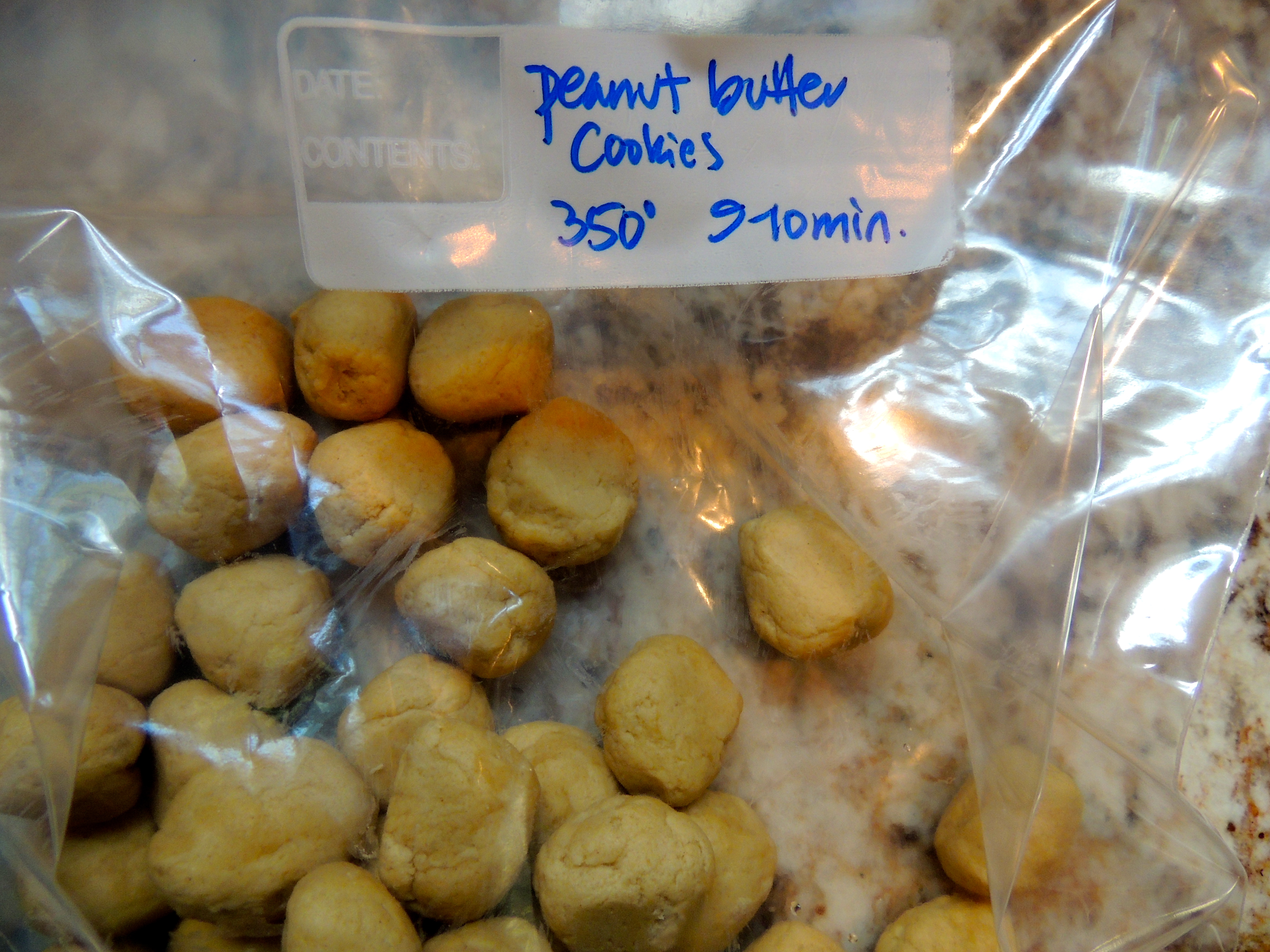 Once they are frozen toss them into a zip top freezer bag and be sure to label. I like to add directions for baking as well so I don’t have to look it up! To bake after freezing: place on a cookie sheet and wait until they defrost (doesn’t take too long) (you need to press with a fork dipped in water and you can’t do this when they’re frozen). Then bake at 350 degrees F for 10 minutes!