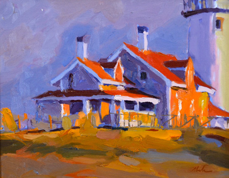 I have always been a big fan of Robert Abele’s work. The striking colors and his style… I love it! His work reminds me so much of the late Charles Sovek, who we adored. Robert has his own style, but I think it’s very reminiscent of Sovek. The striking color of this lighthouse building at sunset against that gorgeous blue sky is just breathtaking!