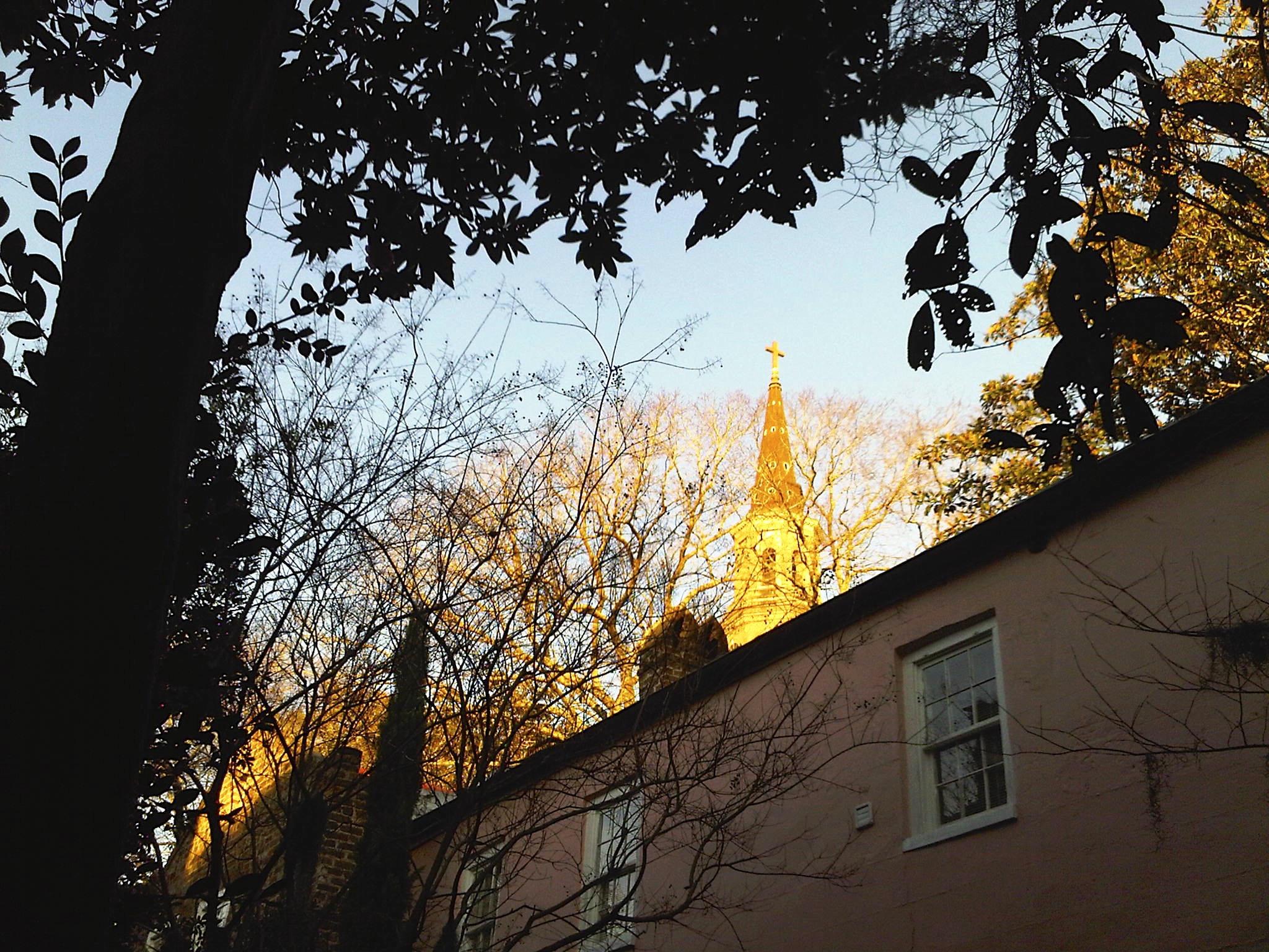 The spotlight is on the steeple isn’t it? I love, love, love that golden light! Gorgeous view here in Charleston, SC – had to share!
