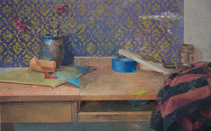 Zoey Frank. Wow! Stunning? Right? I love her work. The texture to it… and the background of that wallpaper? Mesmerizing! Zoey is one who can take an every day subject that most people wouldn’t think of painting and she can make it extra special!