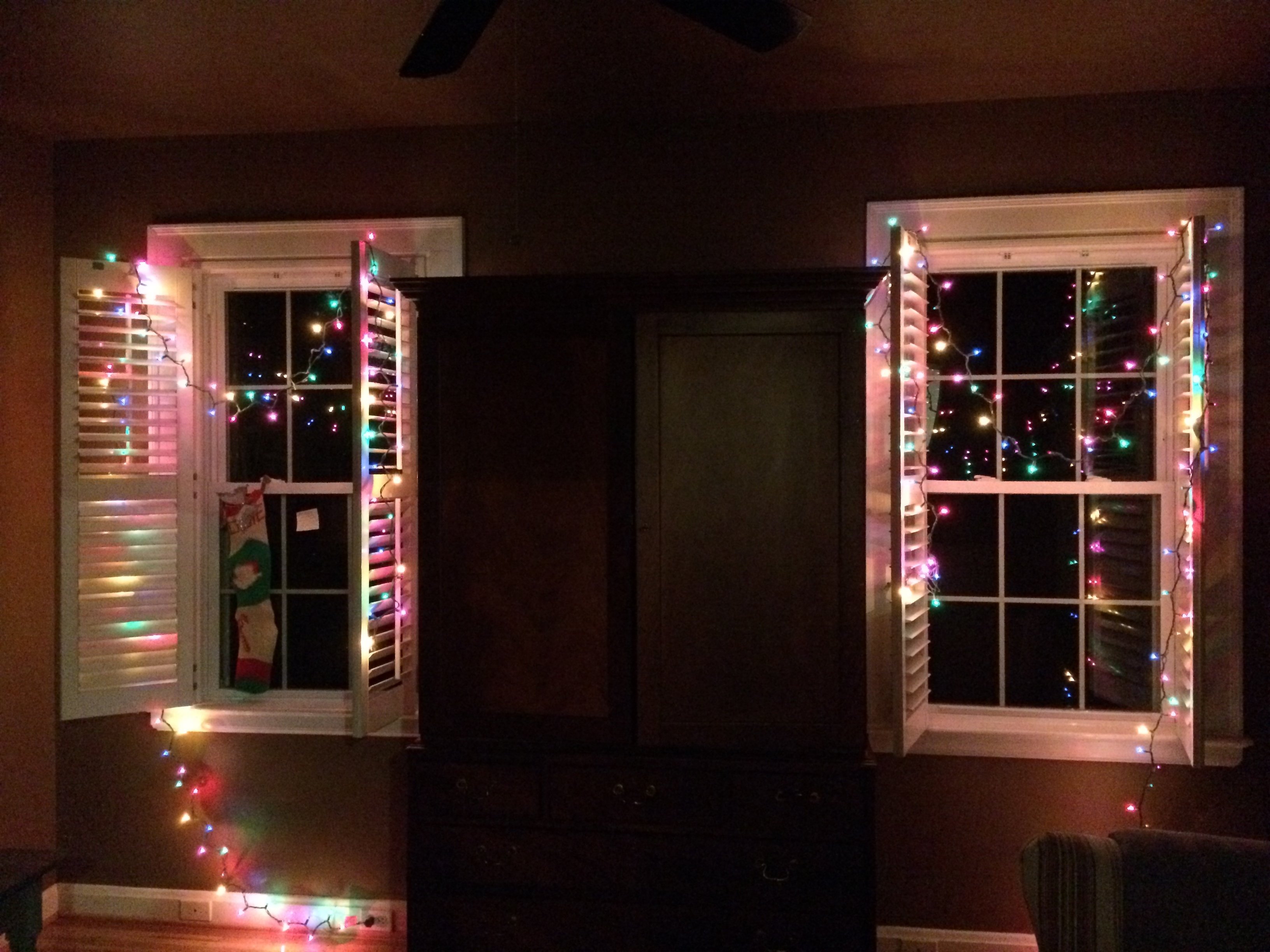 (Fred had the flu, and we weren’t going to put any decorations out, but we were sitting in a dark room void of all things Christmas…) – I pulled out a few strings of lights and WOW! Christmas has arrived! It was so wonderful sitting in that room with those lights on! It make me want to leave them up all year long :)