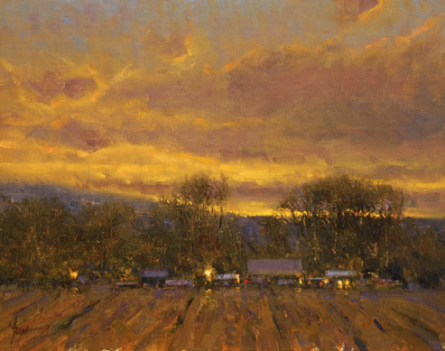 “I still spend about 50 percent of my time painting on location. That’s what drew me to painting, the love of being out in nature and trying to accurately capture it on canvas. I still get excited when I head out for a day of painting. It doesn’t matter if I paint in Alaska or out my front door, it helps keep me fresh to paint on location,” he says.