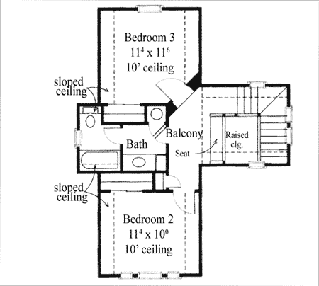 The upstairs is great with two bedrooms separated by a bathroom. I think the sloped ceilings add so much character to a home!