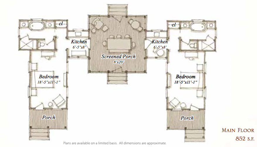 232 Shelby Road, a wonderful plan from Our Town Plans. This plan is 852 square feet that is conditioned, and 472 unconditioned square feet (screened porch area), with 2 bedrooms and 2 bathrooms.