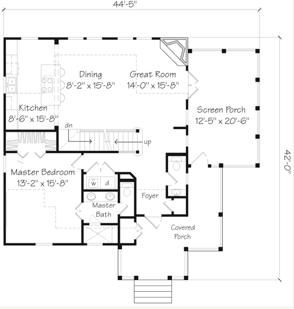 The Master Bedroom/Bathroom is in the front of the house, with the Living/Dining/Kitchen in the back of the house, which I really like. It’s more private. It’s wonderful to have a screened porch off the Great Room, so you can open those French doors and have a nice breeze flow through the house on a nice day!