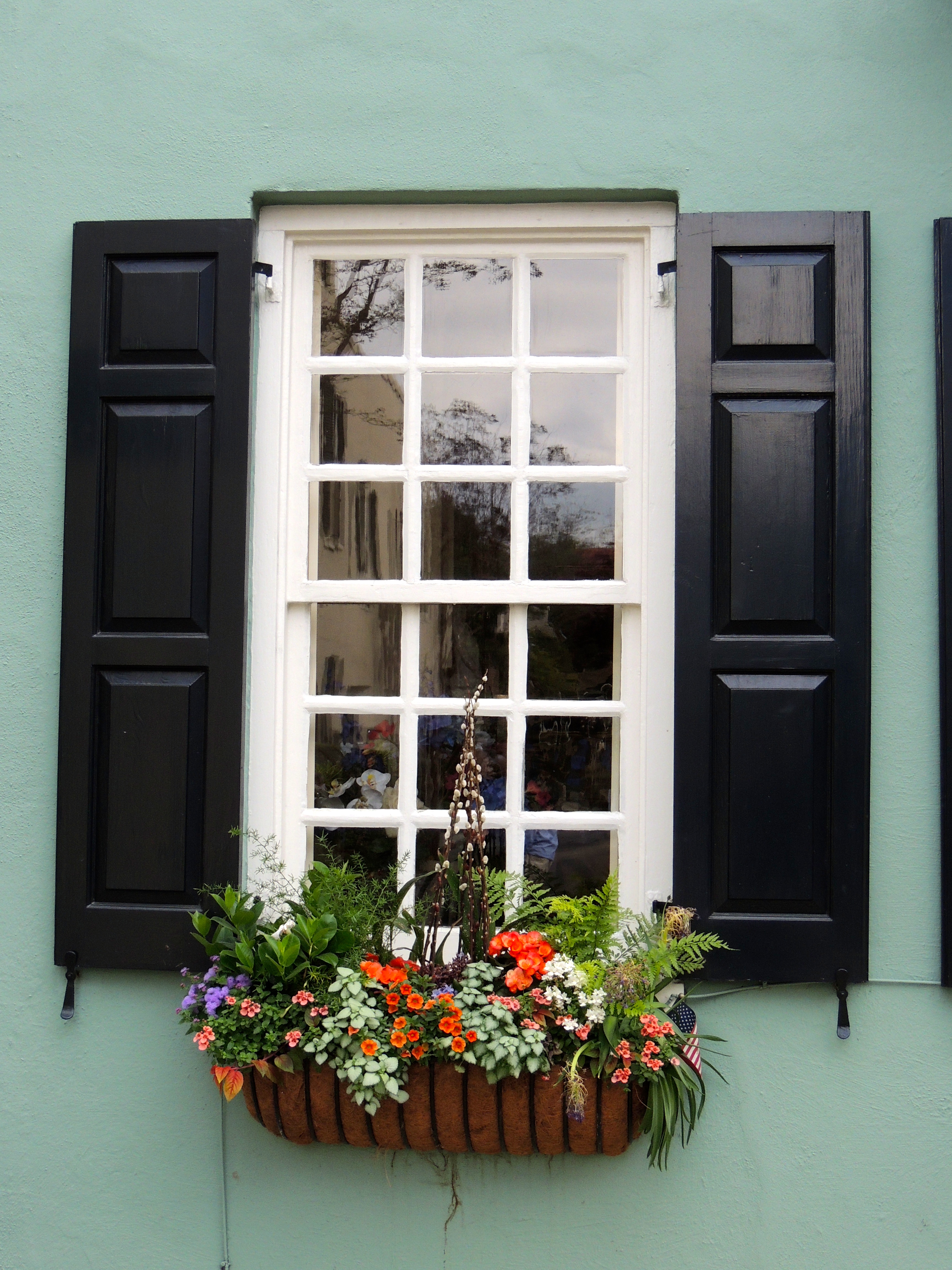 A window in Charleston, SC – Just look at the colors in that window box! The flowers are beautiful and compliment the color of the house so nicely!