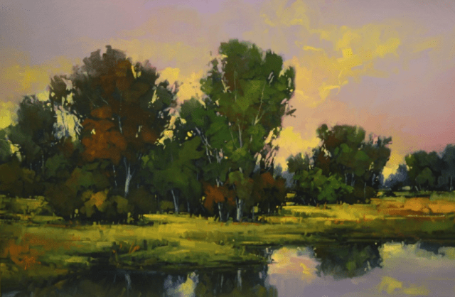 Another stunning painting. The sky… wow! Gregory’s trees are so full of character. The water is stunning, especially with the reflections from that gorgeous sky. If Gregory’s work seems familiar, you may have seen it in Southwest Art or American Art Collector.