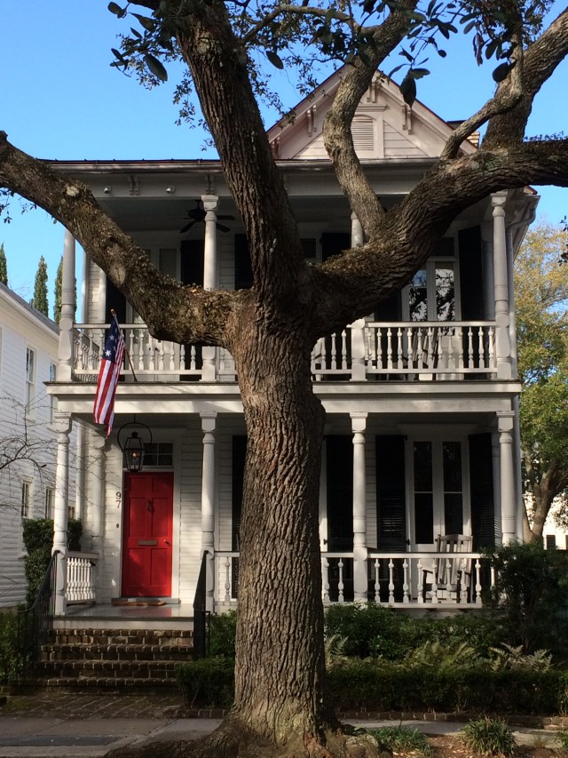 This is one of my favorite homes in Charleston, SC. We used to walk by it when we worked at a gallery on Broad Street. It’s got such charm! Of all the times I have walked by this house I have NEVER walked by without a car parked in front of it, so when I saw this I was ecstatic! SNAP that photo! I could sit on that porch all day long! So much to see right in this spot…