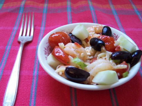 I have GOT to update this photo, why did I use such a tiny bowl? Anyway, trust me, this is an excellent recipe full of flavor. The feta makes it come alive. I like the grape tomatoes and shrimp best when they’re roasted, but you can always just cut up the tomatoes and give the shrimp a quick boil and then into a bowl of ice water for a few minutes before draining and adding to salad. Good with a slice or two of crusty bread. Click HERE for recipe…