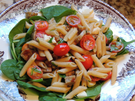 Pasta with Italian Sausage, Tomato, Basil and Spinach