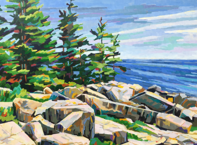 Jennifer Van Cor, a wonderful artist from New Hampshire. Her paintings are striking – full of color and very unique brush strokes. She can paint those “Maine trees” that I love so much – each has their own personality.