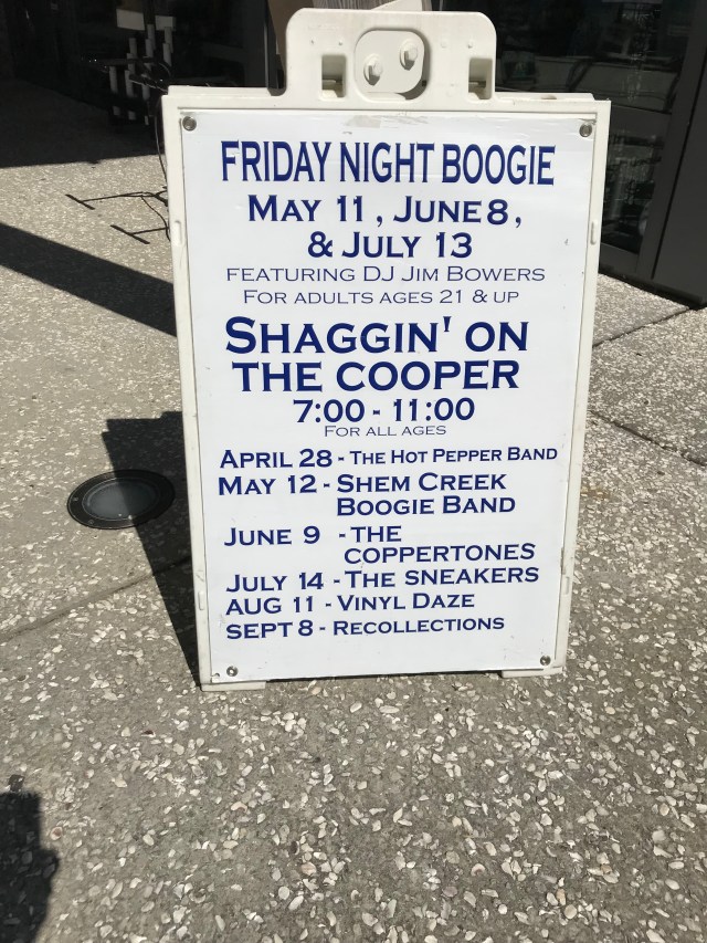 Years ago when Fred and I were still dating we went out for an evening of shagging. I didn’t know those dance moves, so Fred showed me, we practiced and had a blast. We weren’t anywhere near as fancy as the video (orange link) – but we had a great time! So, if you’re in the Charleston, SC area, tonight is the night!
