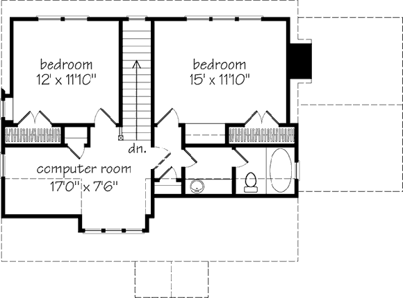 This version of the upstairs has two bedrooms, a bathroom and a computer area, great for an office space, students, or just everyday computer work!