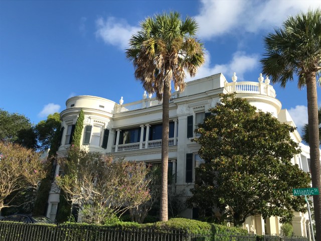 Another beautiful home in Charleston, SC… these historic homes are just stunning – in both scale and architecture. Those palms and the (Italian?) Cypress trees are so dramatic!