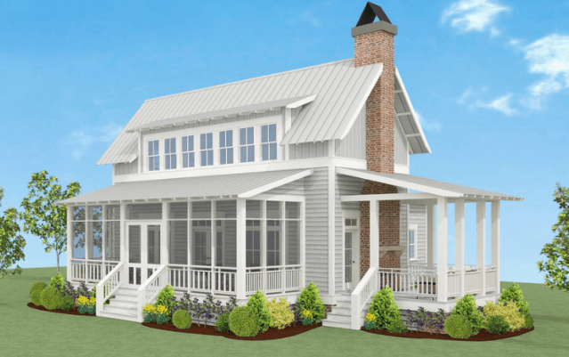 I adore this plan, the porches are so wonderful and give you a few different spaces to head to. Sometimes you may want to visit and have a larger space and other times you may want to read or just chill and be in the smaller space. Porches are near and dear to my heart. We grew up with a fabulous porch, and to this day it’s hard to get my parents to come off of their porch. I see why, when I’m there I don’t want to leave it either. Especially if you have a view like they do… and being near water is an added bonus that can be very entertaining! Click HERE to see more images of what the inside of this home can look like!