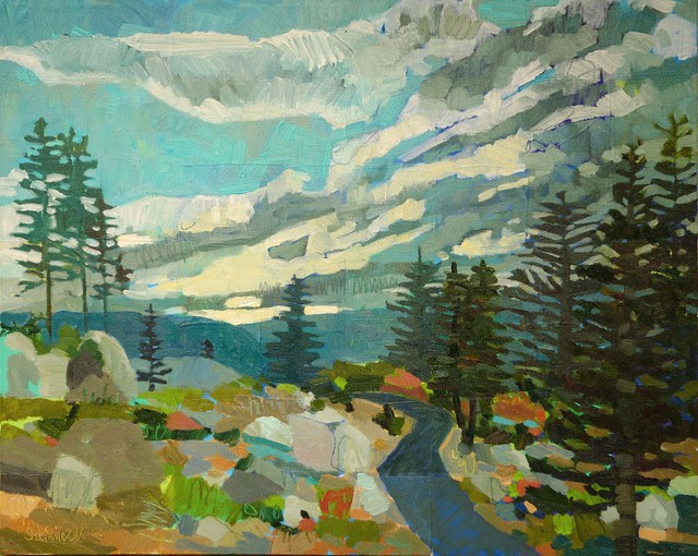 This is also true…”There are moments when I see a landscape and it is so beautiful to me, it is overwhelming to look at. My heart jumps out of my chest, I want to be the land. I want to be the rain, the wind, the clouds. However I am just a human in a tiny body. So I humbly accept my place and do what I can to show my gratitude and awe for the land – I paint it.”