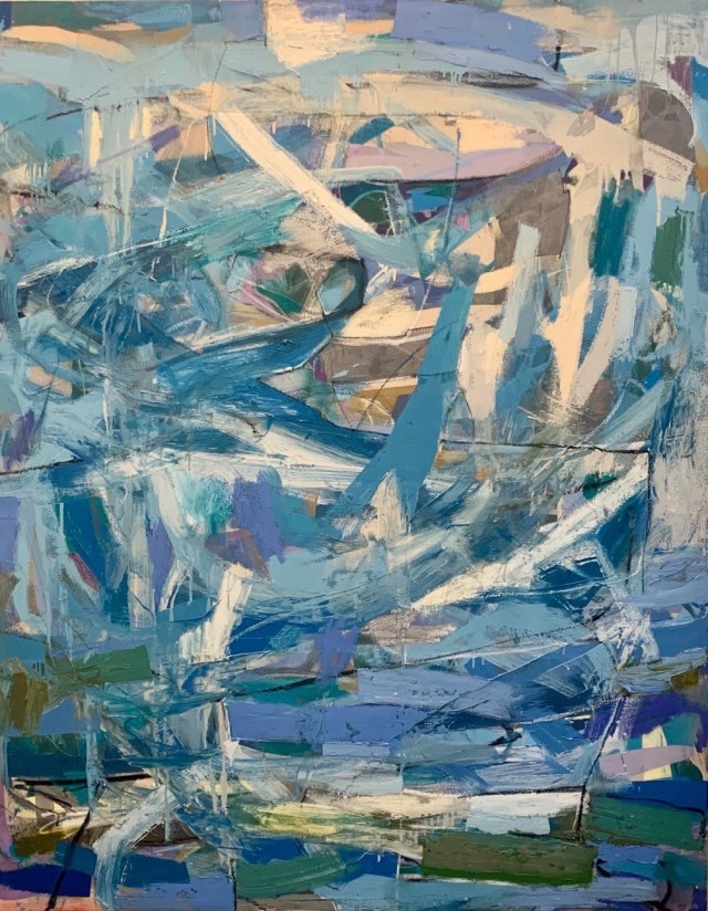 Michael Hedges. Michael was inspired by the Polar Vortex that affected so much of the country with the coldest temps on record for many areas. This painting is fabulous – with the (VERY) cool (icy) blues, the ENERGY and the airiness. I love all of Michael’s colorful paintings, they’re so dynamic. This one was a bit different, as was the Polar Vortex! You can tell that this man loves to paint!