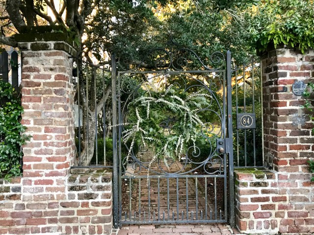 If, and when you visit Charleston, be sure to check out the many different gates (as well as architecture). These wrought iron gates vary (tall, short, ornate and some more modern). Many have wreaths and the courtyards that they lead to are simply beautiful!