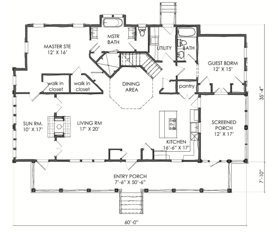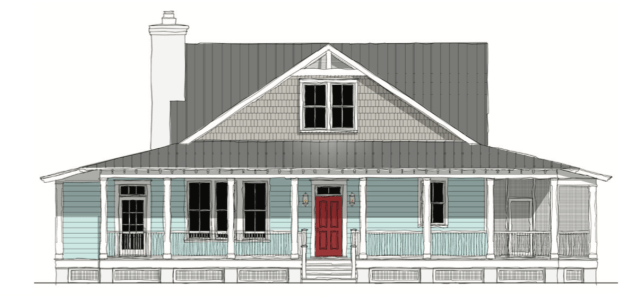 This is the TNH LC 39A plan by Moser Design Group. I love the long front porch (50+ feet!) and the wonderful screened porch tucked on the right side of the house. You can also gain entry to the house (guest bedroom and kitchen) off the screened porch. On the left side of the house is a sunroom. You may just see a door on the far left, but there is a bank of windows on the side of the house that brings light into a sunroom. This plan has such curb appeal!!