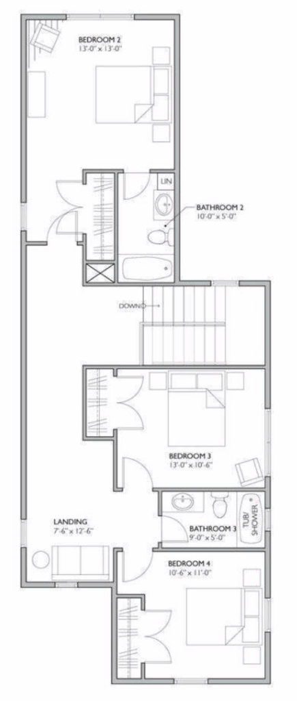 This is the Normande house plan by Perch Plans. This plan is 2,702 square feet with 4 bedrooms and 3.5 bathrooms. This home is 60′ deep and 75′ wide. When you look at the house plan you’ll see what I mean. There is so much room in this plan. The Normande has sharp lines – I love it!