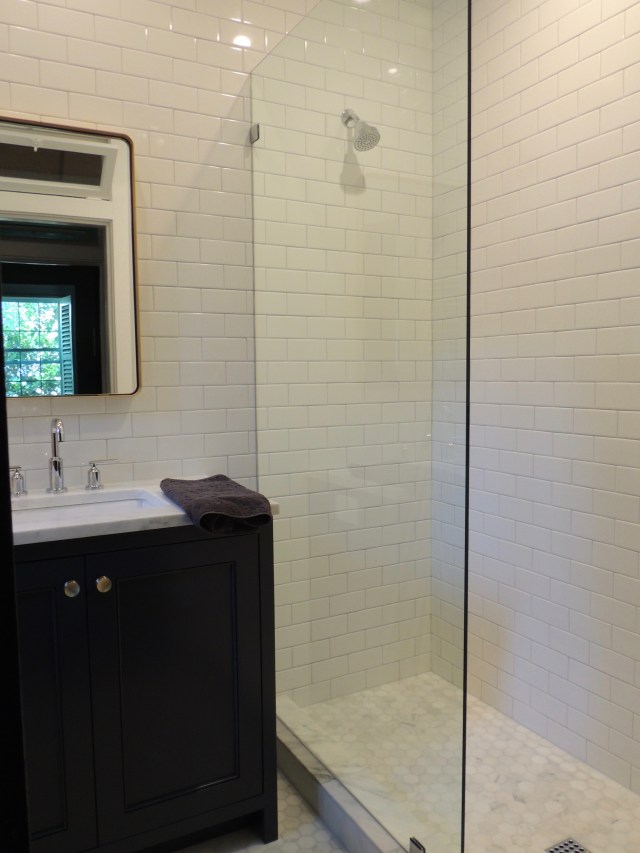 The shower glass is amazing. I’m so glad we put the controls to the shower on the right and the shower head on the left (thanks Peter!) – the shower even SOUNDS nice hitting the tile.