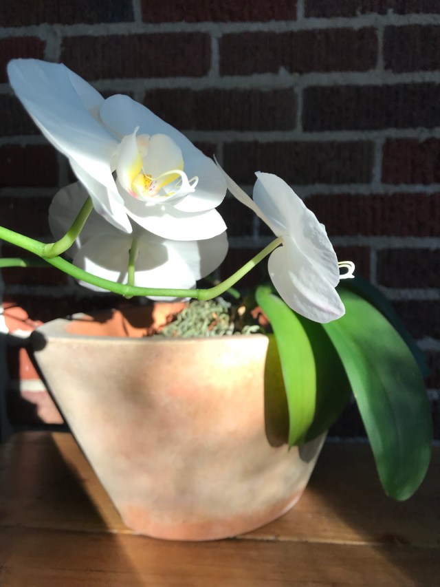 Years ago a friend sent me this orchid. It’s such a beauty (thanks Kate!) This is rebloom #3! I love how orchids bloom for months, then you have no bloom for about six month (guessing) and then TADA, like a miracle there will be another shoot and in no time you are blooming again!