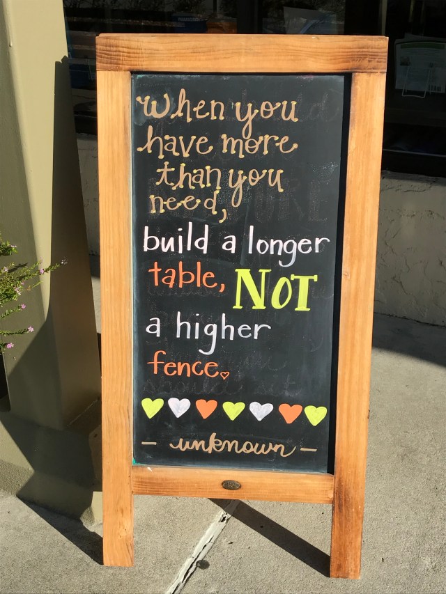 This is so true. If you are blessed with more than you need in life, instead of building fences and shutting people out, invite them to sit at your table. Life is too short not to.