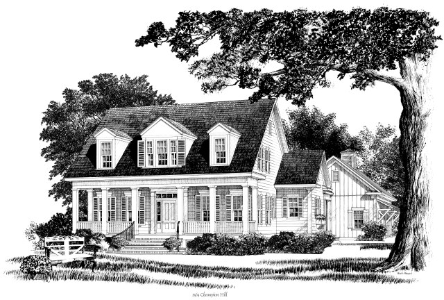 This is the Champion Hill House Plan by L. Mitchell Ginn & Associates. This plan is 3,141 square feet with 4 bedrooms and 3.5 bathrooms. There is so much to love about this plan. I love the dormers, the layout is perfect and the history behind the name is heartwarming – don’t miss reading about it via the Champion Hill link above!