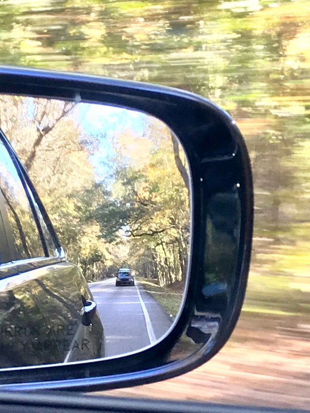 In the blink of an eye your world can change, not to mention your family, friends and the entire community. On Thanksgiving Day we were on our way home, it was a beautiful day. I snapped a photo of the rear view mirror (not quite in time to catch the beautiful large oak trees that form a canopy over Hwy 61.)