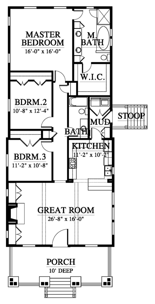 What a great porch to spend time on! The porch leads you to the great room which is open to the kitchen. There are two guest rooms and a master suite. I would use the middle guest room maybe as a library – it’s all about the decor. Have great floor lamps, comfortable chairs – wonderful art and lots of books! Oh, and maybe a nice little coffee machine with a tiny fridge, hehe…