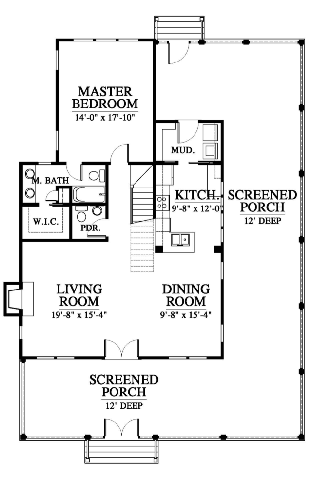 Fabulous screened porch entry… imagine the time that can be spent outdoors – it makes the entire house feel so much larger! Once you step through the doors you walk into the living/dining area, kitchen on one side of the house, master bedroom on the other – Other key areas – mudroom, laundry room, and powder room, well, because they just come in very handy!