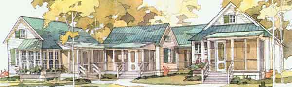 Island Cottage (SL-358) is an exclusive design for Southern Living by Historical Concepts, LLC and offered by Our Town Plans, LLC . This plan measures 2,578 square feet with four bedrooms and 4.5 bathrooms. It consists of four “units”, each unit contains a bedroom, bathroom, closet and screened porch. (Visit the plan link above “Island Cottage” to see more images of the exterior!)