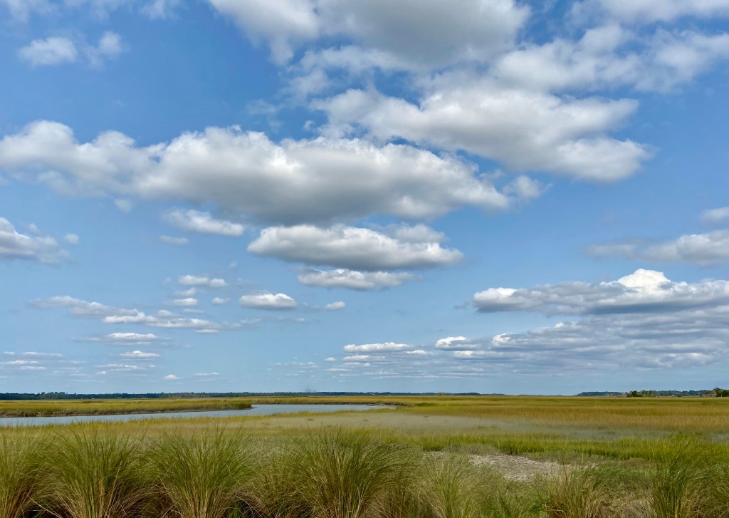 This image was taken between Seabrook and Kiawah, maybe more on the Kiawah side. The marsh is stunning, isn’t it, and the sky! Those clouds! What a spectacular day!