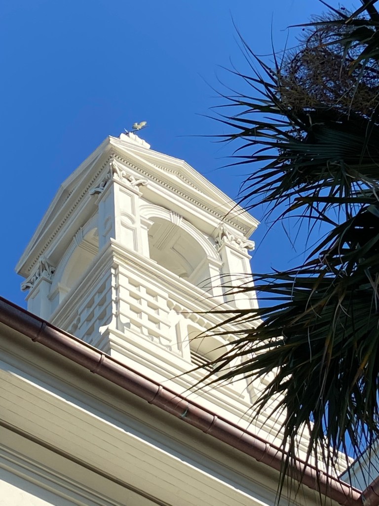 Steeples everywhere… Charleston, SC has so many churches. Churches that have stood the test of time, that have gone through so much and have survived or brought back to life after a hurricane or earthquake over the years. #somuchhistoryhere This steeple is so striking with the palm and the stunning blue sky. Let me tell you the copper gutters that you see here are huge! This is one beautiful church!