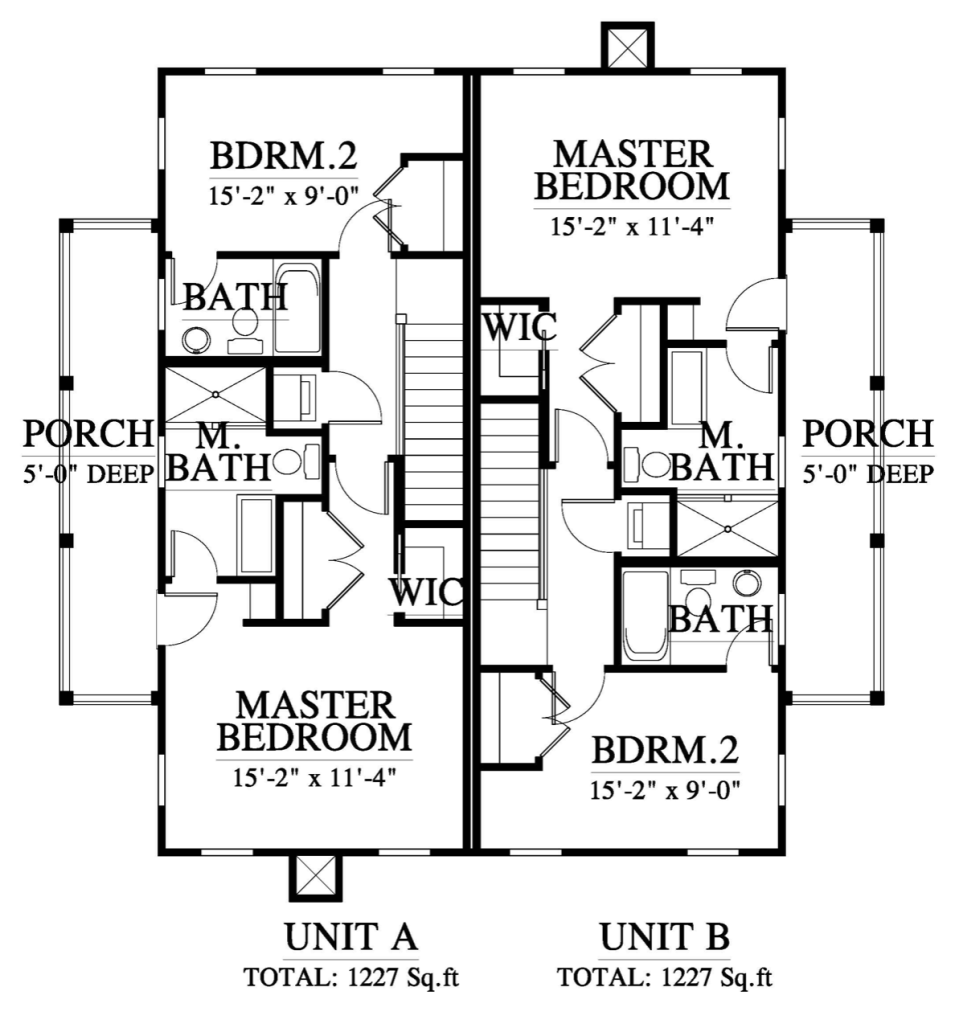 Again, the plans are flip flopped, master in the front of one and the back of the other, each with their own porches. How can you beat this? Each bedroom has its own private bathroom. If you have a guest, they may never leave ;)