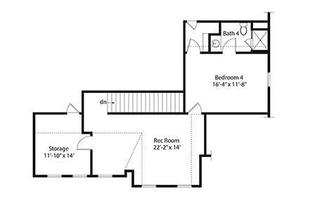 Upstairs there is another bedroom/bathroom, a rec room and a storage room. What’s not to love about this plan? This bedroom or rec room could also make a good studio (whether it’s art, yoga, exercise, photography) or fabulous office space for those working from home!
